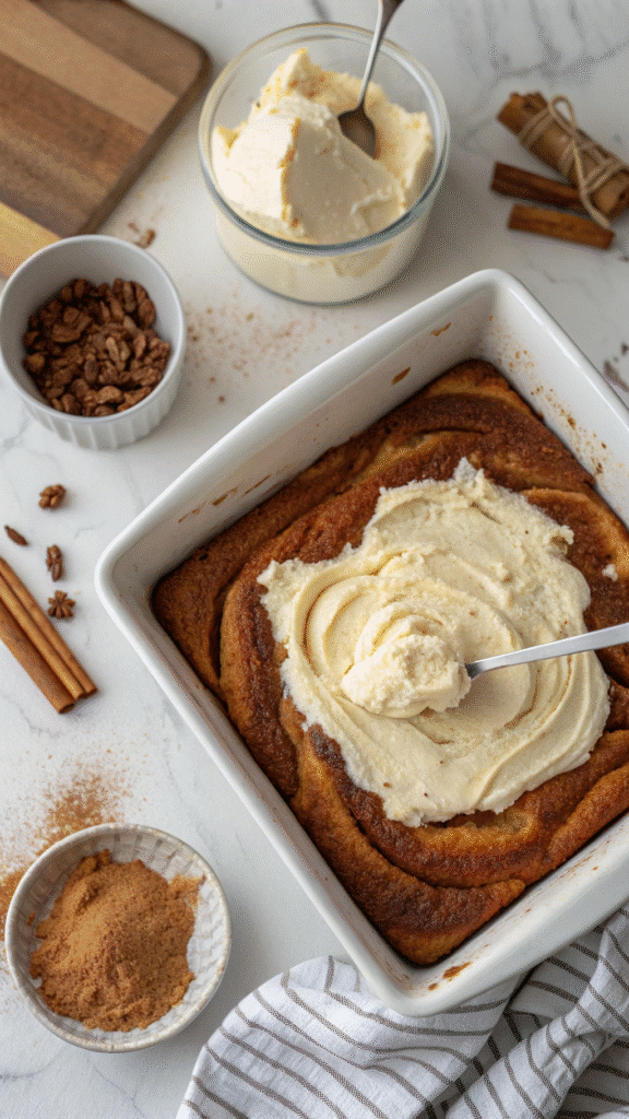 You start by mixing the batter, layering half into a pan, adding the cream cheese mixture, and spreading the rest on top. A cinnamon sugar blend creates a swirl that bakes into the tender crumb. The cake rises softly and stays moist after cooling.