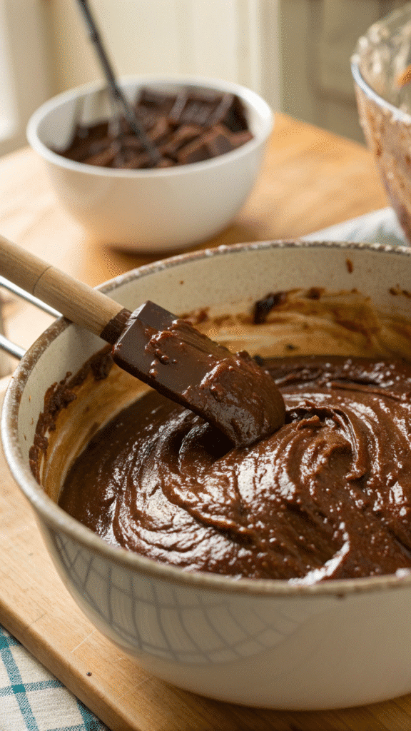 You whisk the wet ingredients, mix in the dry ingredients, pour the batter into a lined pan, and bake until the edges are set and the center stays soft. The brownies firm up as they cool for clean slicing.