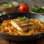 Leftover sheet pan cod pasta can be stored in an airtight container in the refrigerator for up to 3 days. For best results, reheat gently in a skillet over medium heat, adding a splash of water or broth if needed to prevent the pasta from drying out, or in the microwave.